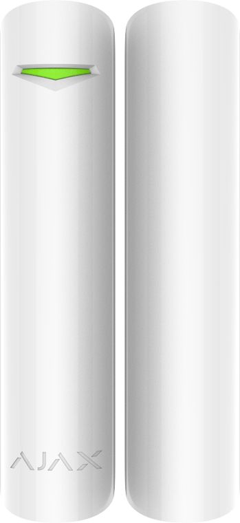 Ajax DoorProtect (white) Извещатель магнитоконтактный, радиоканальный (протокол Jeweller); расстояние срабатывания до 2 см; f-раб.868,7...869,2 МГц; дальность связи до 2000 м; элемент питания 3 В CR123A; t-раб.0...+50°C; в комплекте два магнита; белого цвета