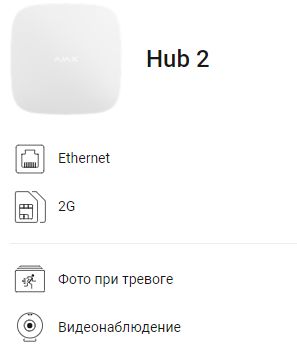 Ajax Hub 2 (white) Центр управления системой Ajax с встроенным GSM-коммуникатором (2G), 2 SIM карты, Ethernet; протоколы Contact ID, SIA; до 100 радиоканальных устройств работающих по протоколу Jeweller; f-раб.868,7...869,2 МГц; дальность связи до 2000 м; поддержка датчиков MotionCam; до 25 видеокамер; до 50 пользователей; U-пит.110…240 В; встроенный Li-Ion 2 Ач резервный источник питания; t-раб.-10...+40°С; 163x163x36 мм. Белого цвета