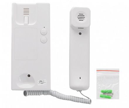 FX-HS1A (белая) Аудиотрубка для координатных подъездных систем.Трубка предназначена для использования с домофонами VIZIT, CYFRAL, ELTIS, METAKOM. Номер квартиры вызываемой с панели подъездного домофона устанавливается атоматически обще домовым коммутатором, установленным на линии подъездного домофона. Кнопка отключения звука, LED ндикатор вызова, Размер 196x85x50мм, 220 гр.