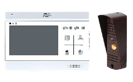 FX-VD5S-KIT (АГАТ 5B КОМПЛЕКТ) Видеодомофон FX-VD5N (АГАТ 5B); Дисплей: 4.3” TFT LCD; Разрешение: 480×272; Яркость: 400 кд/см2; Количество мониторов: до 4-x (Интерком); Количество вызывных панелей: до 2-х четырех проводных панелей; Питание: AC 110~240V 50Гц; Видео выход; Питание DC 12V выход; Цвет корпуса: черный; Крепление: настенное (кронштейн в комплекте); Рабочая температура: -10°С…+50°С; Габаритные размеры: 170х144х20мм. Панель 4-х проводная уличная: FX-CP7 (Медь): Разрешение камеры: 700 ТВЛ; ИК-подсветка: III ИК диода с углом излучения 60° и дальностью до 5-и метров; Питание: DC 12V от монитора; Управление замком на панели (реле); Крепление: накладное; Козырек и Уголок в комплекте; Рабочая температура: -45°С…+50°С; Габаритные размеры: 130x40x23мм