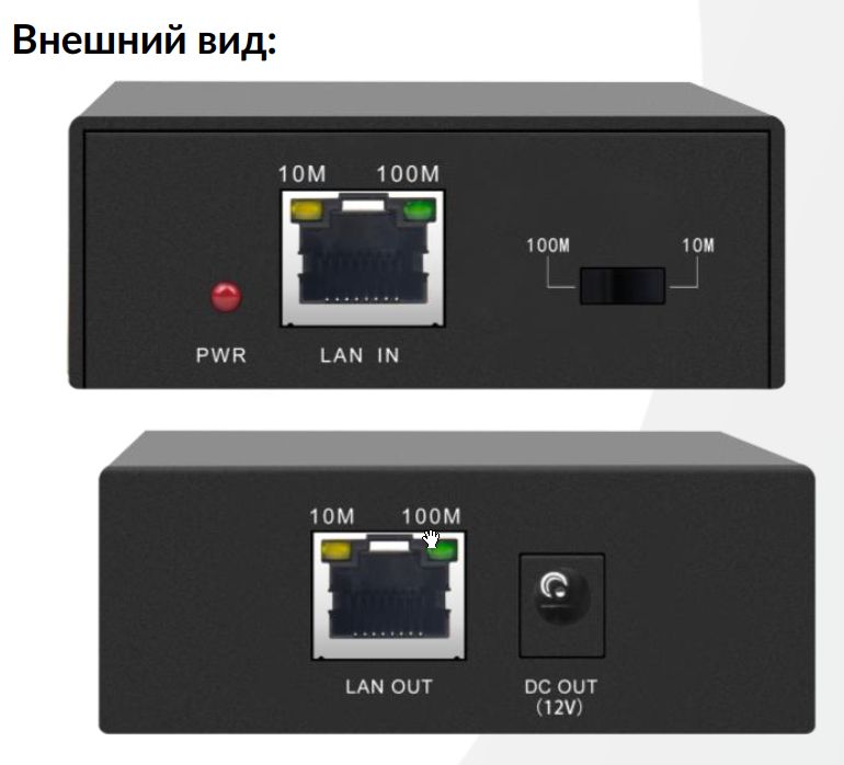PND-S12 Ultra Специализированный сплиттер, вход/выход LAN RJ45, выход питания DC 12В 1А, 100мбит/с до 500 м, 10мбит/с до 800м, температура эксплуатации: -10°...+50°C, защита от статических наводок 6кВ, предназначен для работы совместно с коммутаторами серии Ultra