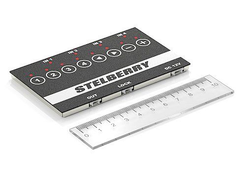 Stelberry MX-320 Профессиональный 4-канальный цифровой аудиомикшер с сенсорным управлением и для смешивания аудиосигналов с микрофонов. Позволяет подавать на выход любую комбинацию каналов. Регулировка любого из каналов, при отключенных остальных, позволяет более точно настроить каждый из аудиоканалов. Уровень входного/выходного аудиосигнала 0...1 В, частота пропускания 20...30 000 Гц, диапазон регулировки усиления -70...+20 дБ (2 дБ), питание (в т.ч. для подключенных микрофонов) 12...16 В, 50 мА, 100х60х6 мм
