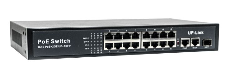 16 портов 10/100 Мбит/с RJ-45 PoE, 2 порта 10/100/1000 Мбит/с RJ-45 Uplink, 1 порт 10/100/1000 Мбит/с SFP Передача данных до 250м. PoE Бюджет до 200Вт, Контакты PoE 1/2(+), 3/6(-), АС 100~240 В, 50-60Гц, DC 52В, 570мА, встроенный блок питания Совместим с удлинителем PoE сигнала Optimus EM1260