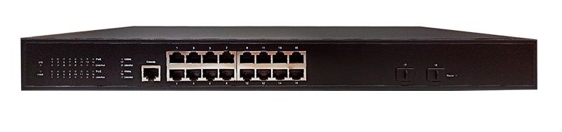 16 портов до 1000Mbps RJ-45, PoE+ 2 порта 100/1000 Mbps SFP 1 консольный порт RJ-45, PoE Стандарт IEEE 802.3af/at, Active POE type A, контакты 1/2(+),3/6(-). PoE Бюджет 300 Вт, Коммутационная способность 36 Гбит/с, Питание коммутатора АС 100~240 В, 50/60Гц. Рабочая температура: от 0°C до 45°C, 440х290х45 мм, 3500 гр.